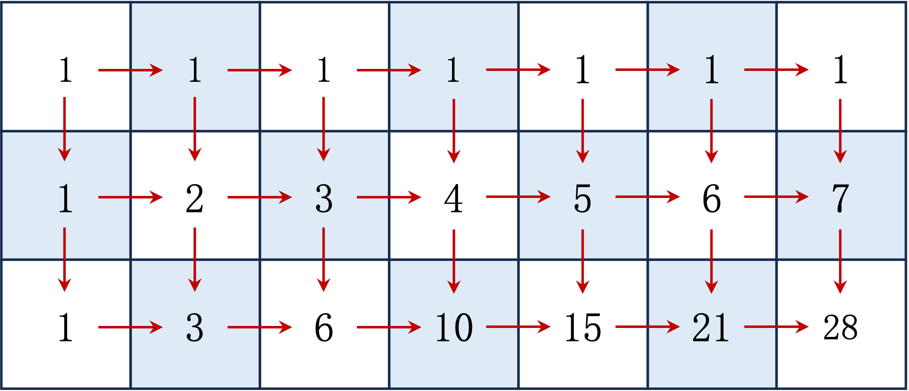 f[i][j] = f[i - 1][j] + f[i][j - 1]