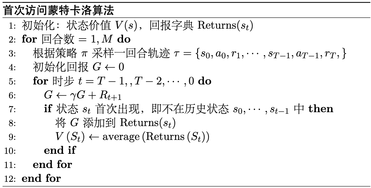 在增量式更新的基础上,蒙特卡洛方法主要分成两种算法,一种是首次访问蒙特卡洛(