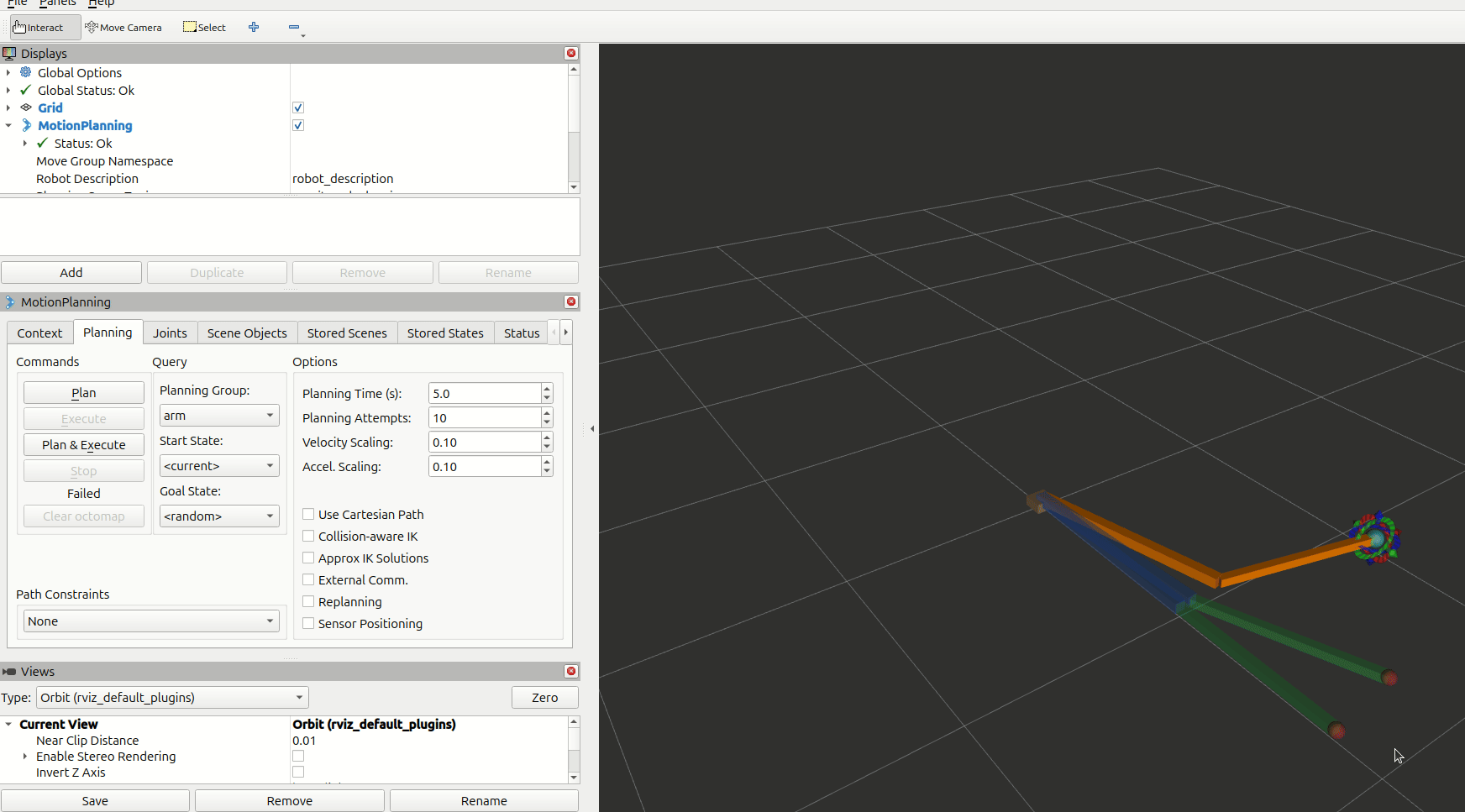 • 规划运动:给末端目标位置,系统自动算出一条无碰撞路径